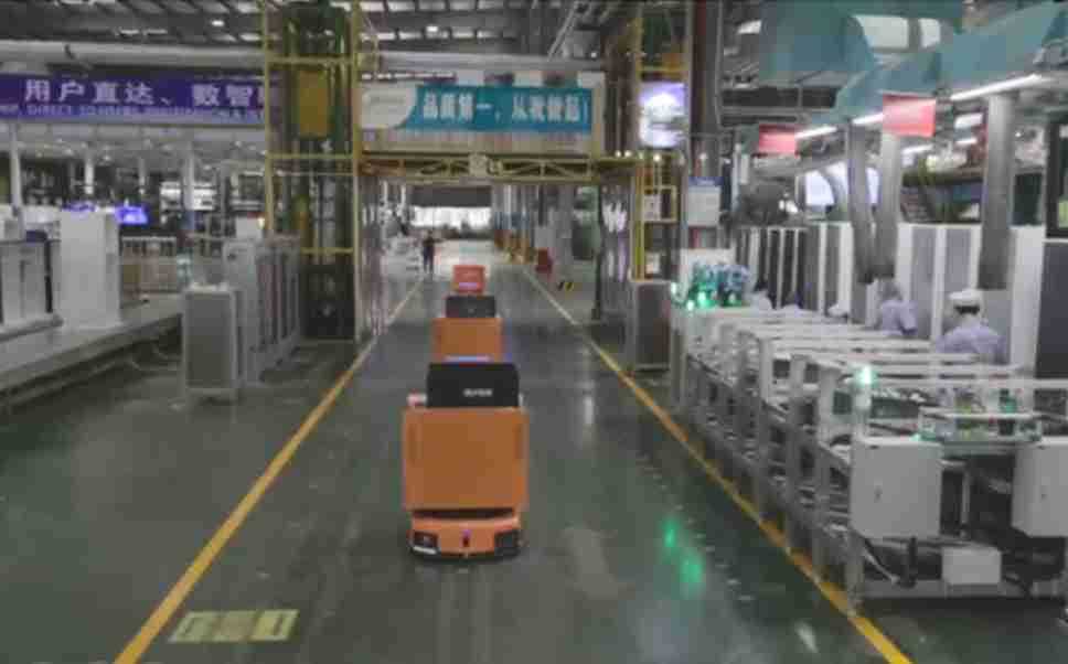 为车载冰箱物流配送打造的智能解决方案,,,,包含产中物流通过潜伏举升AMR搬运至线边,,,,产后成品物流智能仓储,,,,流程包含产中物流智能齐套入库,,线边安灯叫料AMR智能配送至线边,,,,成品入库、、、、出库,,通过无人堆高车机器人,,,,智能仓储管理替代人工作业管理,,,,实现更高存储、、、更高效率、、更具柔性化的解决方案。。。。